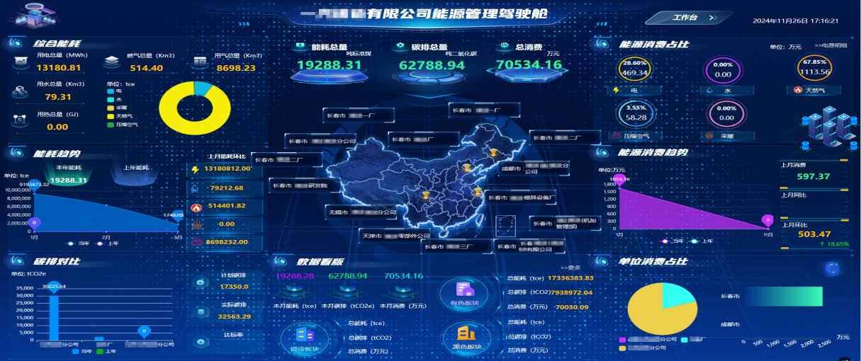 集成电、水、气、热等多种能源,实现全景监控。