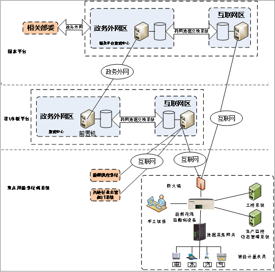 能耗在线监测端设备是集软、硬件一体的网络安全隔离产品,具有能耗数据的在线采集、数据隔离及数据传输功能。用于重点用能企业能耗相关数据的在线采集、分析、汇总与上报,是重点用能单位能耗在线监测系统架构中企业端接入系统的核心组成部分,是设置在重点用能单位的信息节点。